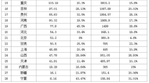 6 贵州 133.46 46.50% 3190.22 43.30%